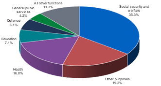 an impact that is primarily reflected in the health, social security and welfare, and other economic affairs functions. Expenses are